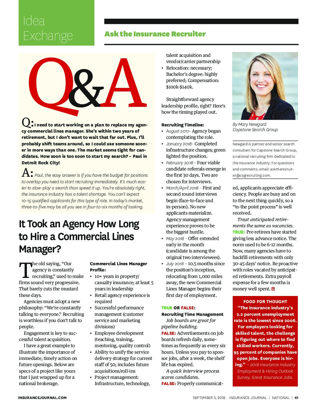 Previous PostSeptember 5, 2018It Took an Agency HOW Long to Hire A Commercial Lines Manager?!by Mary NewgardNext Post Article by Mary Newgard, in partnership with Insurance Journal Previous PostNext Post SHARE THIS POSTYou may also like