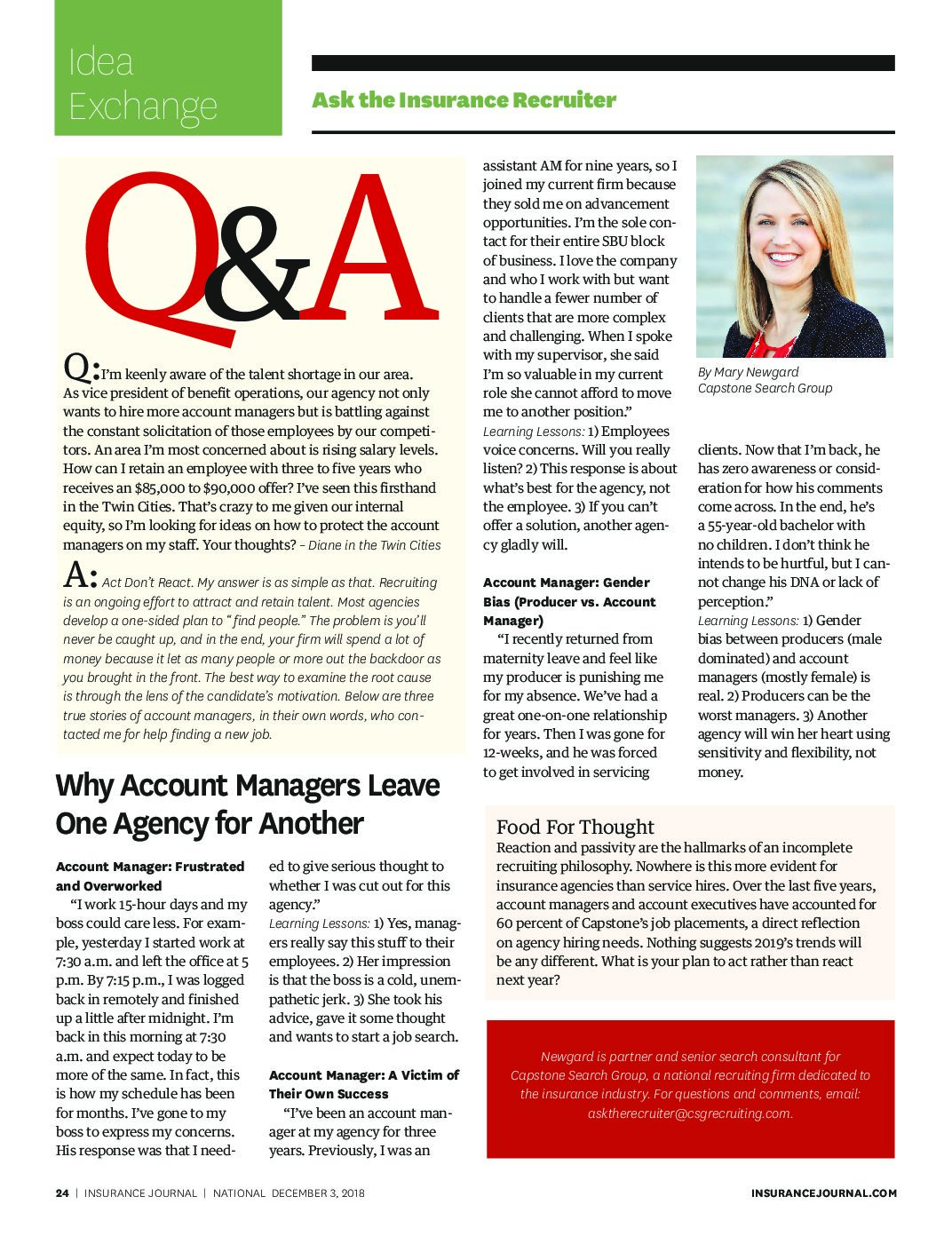 Previous PostDecember 3, 2018Why Account Managers Leave One Agency For Anotherby Mary NewgardNext Post Article by Mary Newgard, in partnership with Insurance Journal Previous PostNext Post SHARE THIS POSTYou may also like